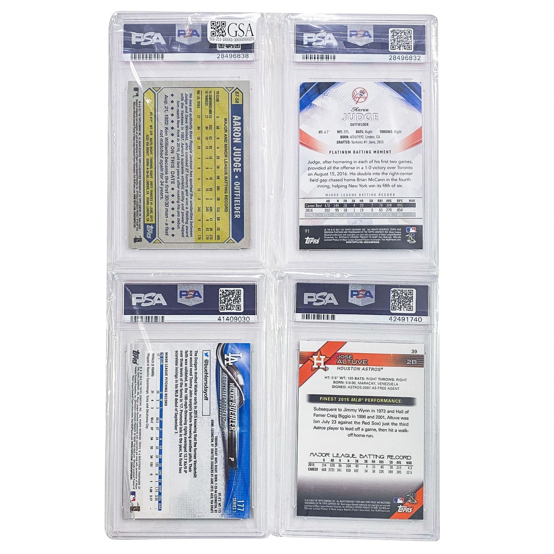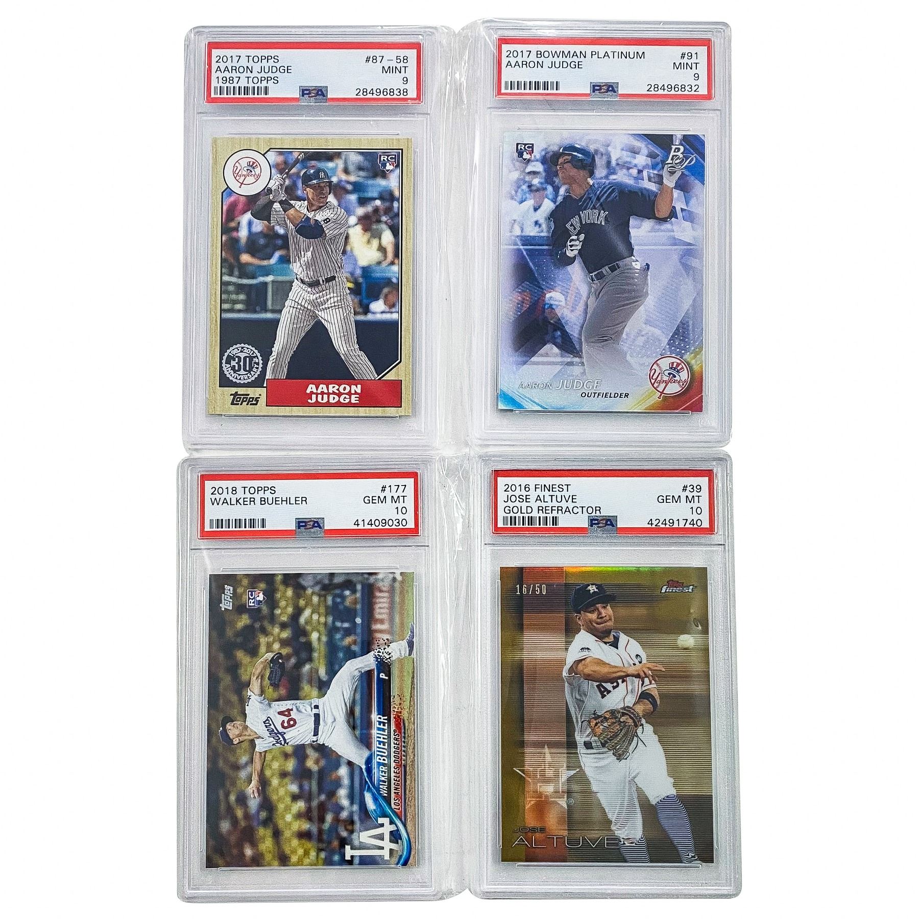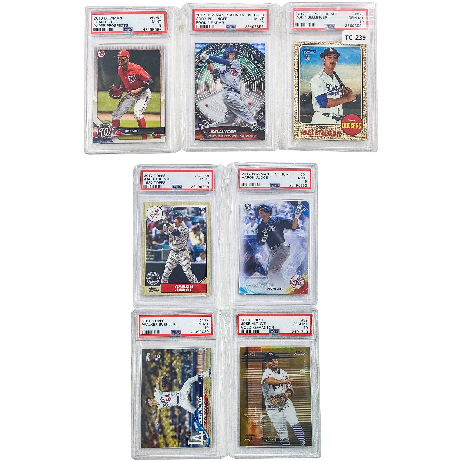 2016 Finest Jose Altuve #39, 2017 Topps Heritage Cody Bellinger #678, 2017 Bowman Platinum Cody Bellinger #RR-CB, 2017 Bowman Platinum Aaron Judge #91, 2017 Topps Aaron Judge #87-58, 2018 Bowman Juan Soto, 2018 Topps Walker Buehler #177