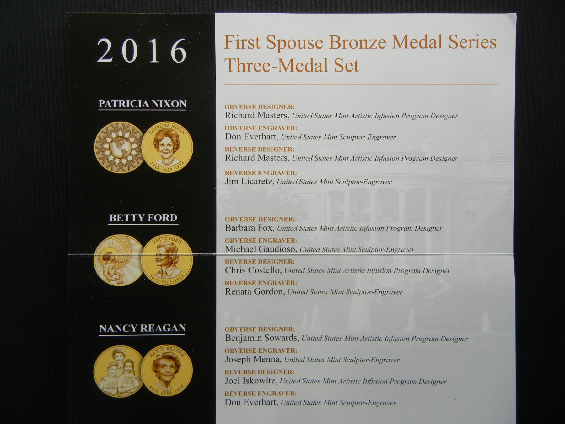 2016 First Spouse Bronze Medal Series Set: Nixon, Ford, Reagan. GEM.