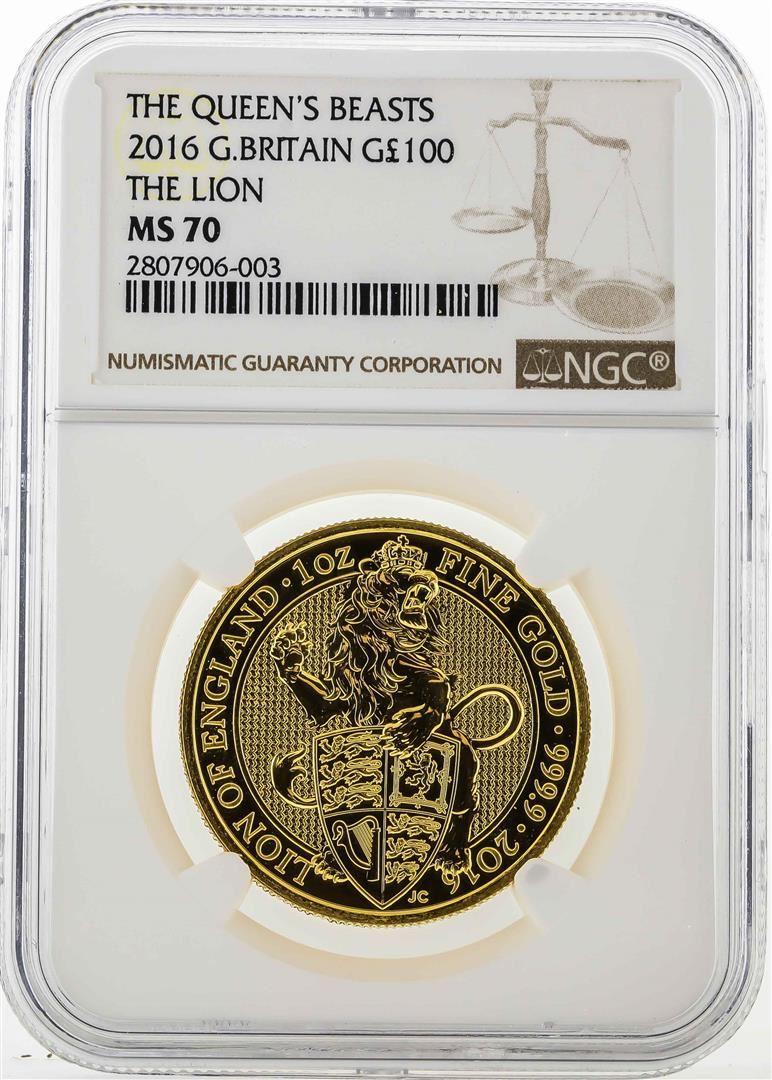One 2016 Great Britain 100 Pounds The Queens Beasts Gold Coin NGC MS70. NGC Certified.