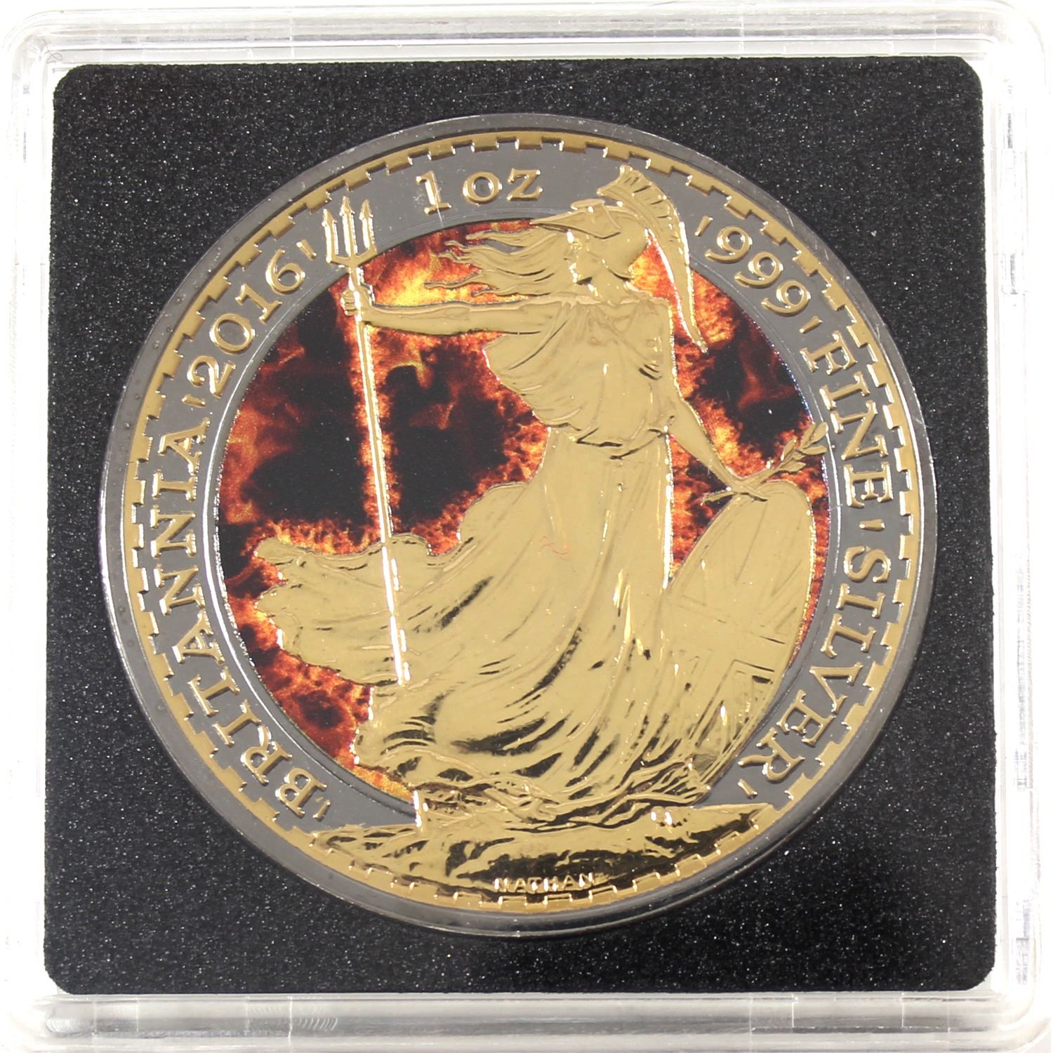 2016 Great Britain 1oz .999 Fine Silver Coloured & Gilded Britannia in Capsule (TAX Exempt)