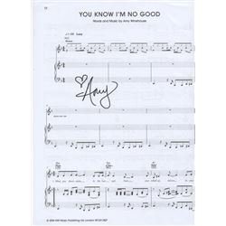 A music song sheet for the song 'You know I'm no good' signed by Amy Winehouse in black sharpie.