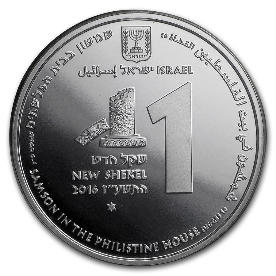 2016 Israel Silver 1 NIS Samson in the Philistine House Prooflike