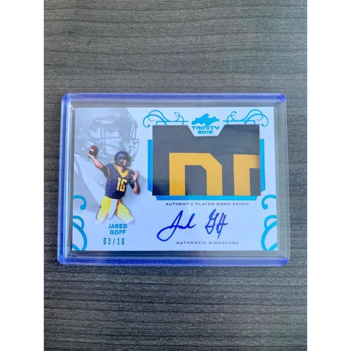 2016 Leaf Trinity Worn Patch Jared Goff Inscription Blue Prismatic Auto RC 3/10 Rams QB. Please view photos for further details.Â