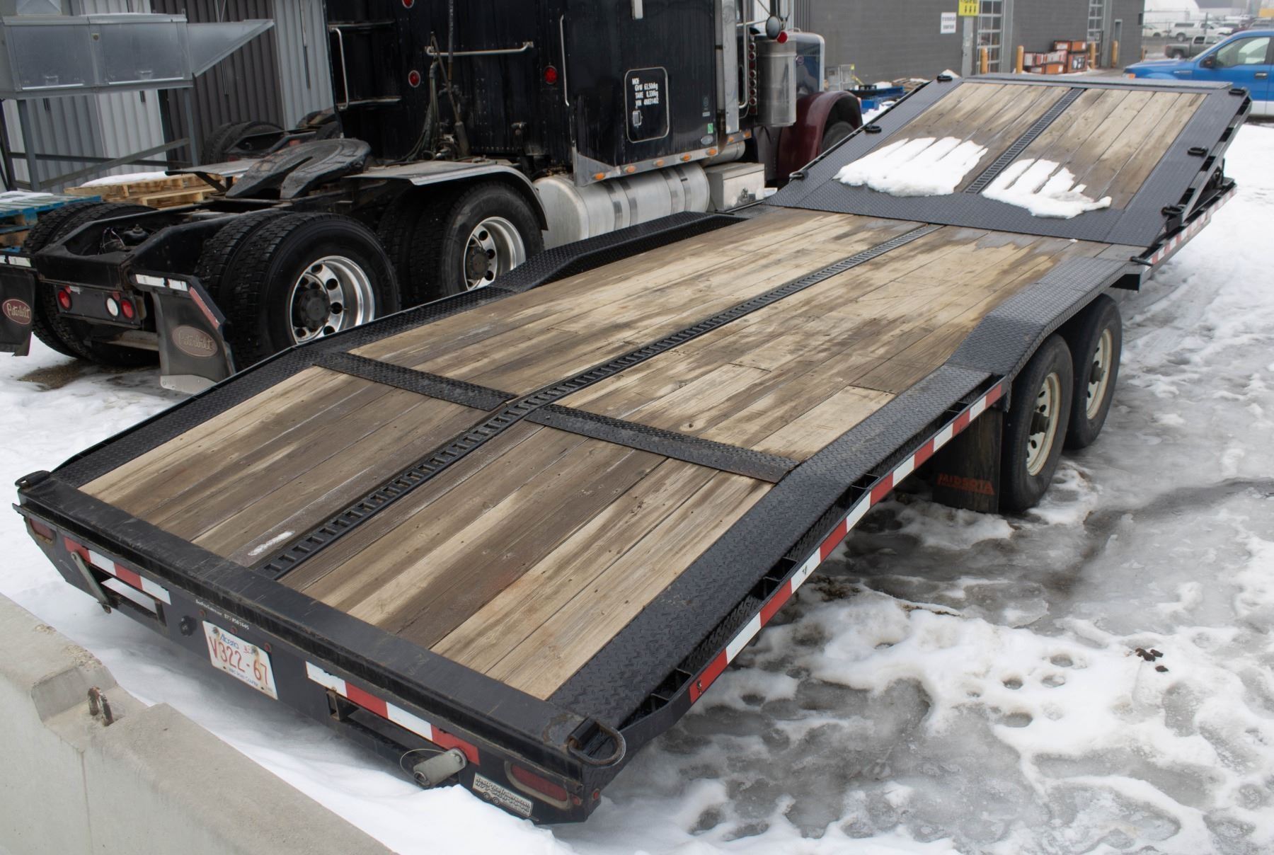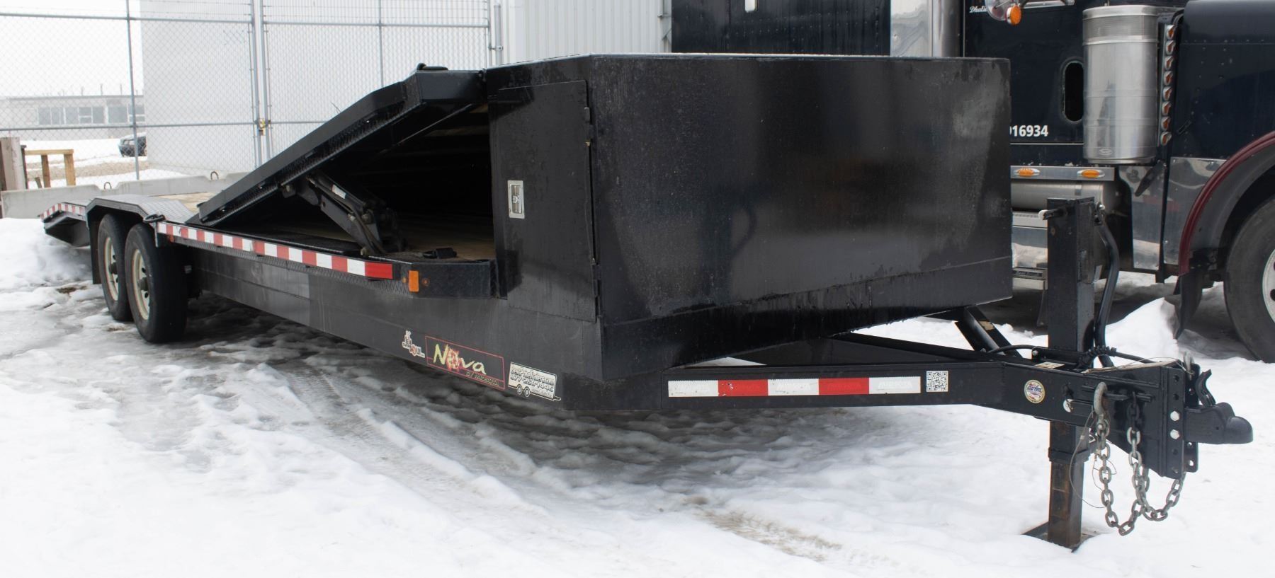 TRAILER FEATURES PROSERIES 12,000LB JACK, POWDER COATED DECK FRAME, 14,000LB GVWR, BALL HITCH, SPRING SUSPENSION, ELECTRIC BRAKES, 22 FOOT MAIN DECK + 4 FOOT FIX DOVETAIL, 102" OVERALL DECK WIDTH, MANUAL RAMPS, WOOD FLOORING, 235/80 R 16 TIRES, HYDRAULIC POWERMAX SERIES 3" BORE X 16 STROKE UPPER DECK, TOOLBOX, BATTERY OPERATED HYDRAULICS WITH REMOTE. MAIN DECK IS 10' X 6'10", UPPER DECK IS 6' X 8" X 2' X 2'6". DECK HEIGHT FROM THE GROUND IS 32", HEIGHT OF UPPER DECK AT PEAK IS 4'6".