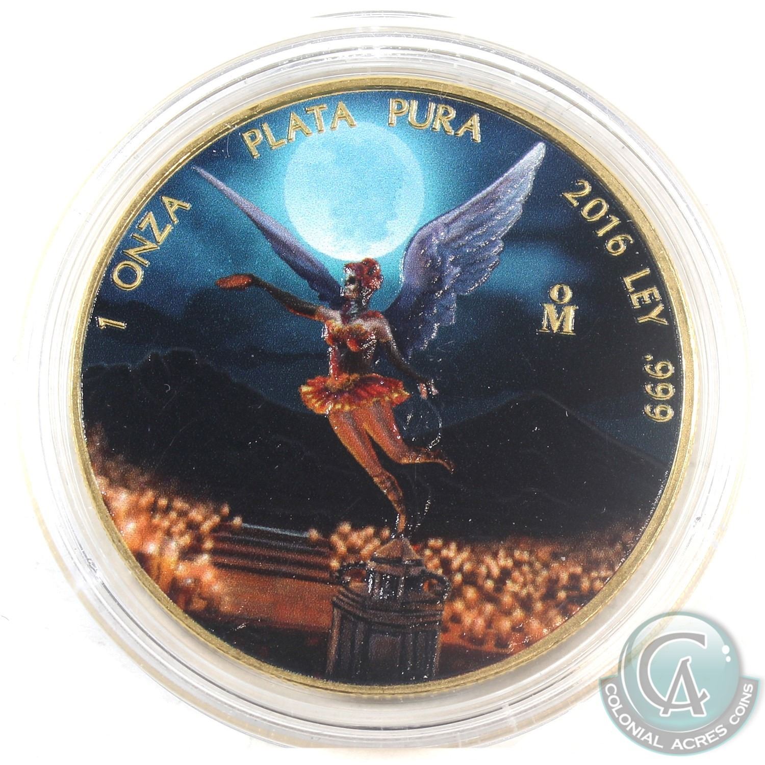 2016 Mexico 1oz Coloured & Gold Plated Libertad Fine Silver Coin in Capsule. (TAX Exempt)