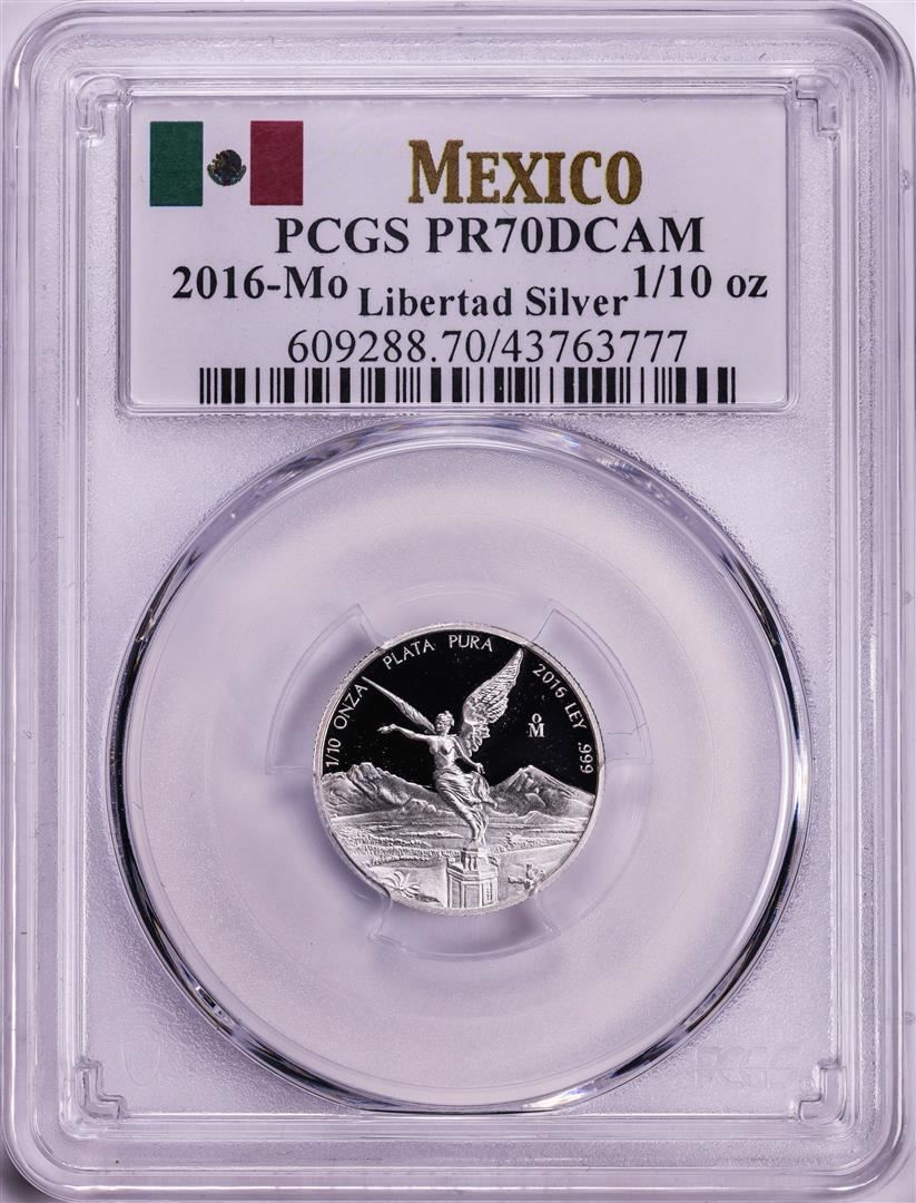 One 2016-Mo Mexico Proof 1/10 oz Silver Libertad Coin PCGS PR70DCAM. PCGS Graded.
