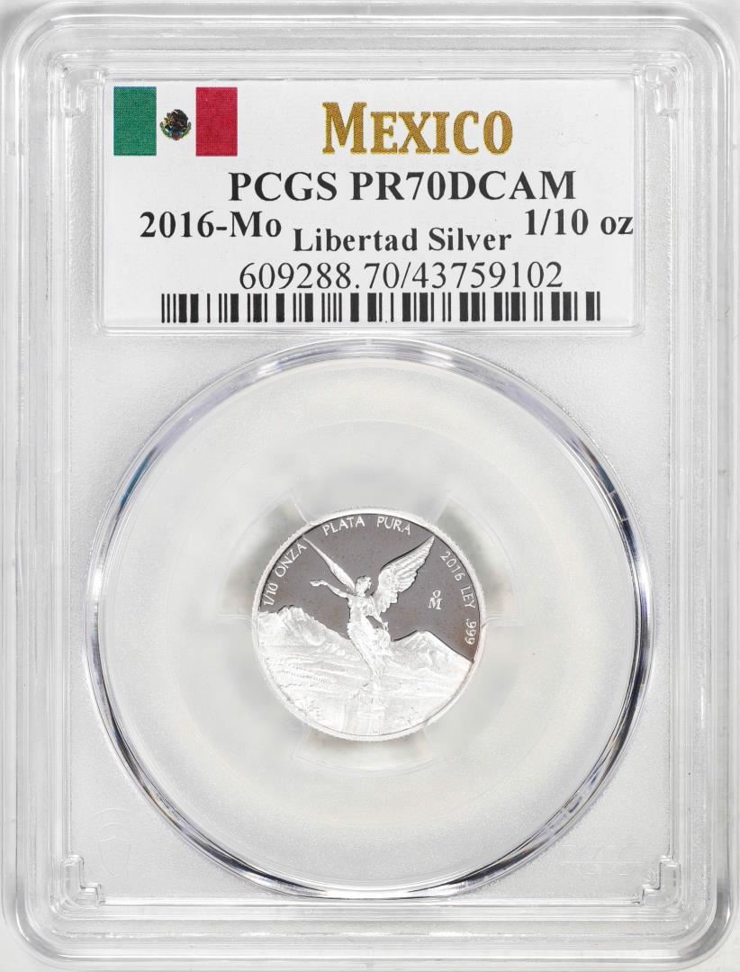 One 2016-Mo Mexico Proof 1/10 oz Silver Libertad Coin PCGS PR70DCAM. PCGS Graded.