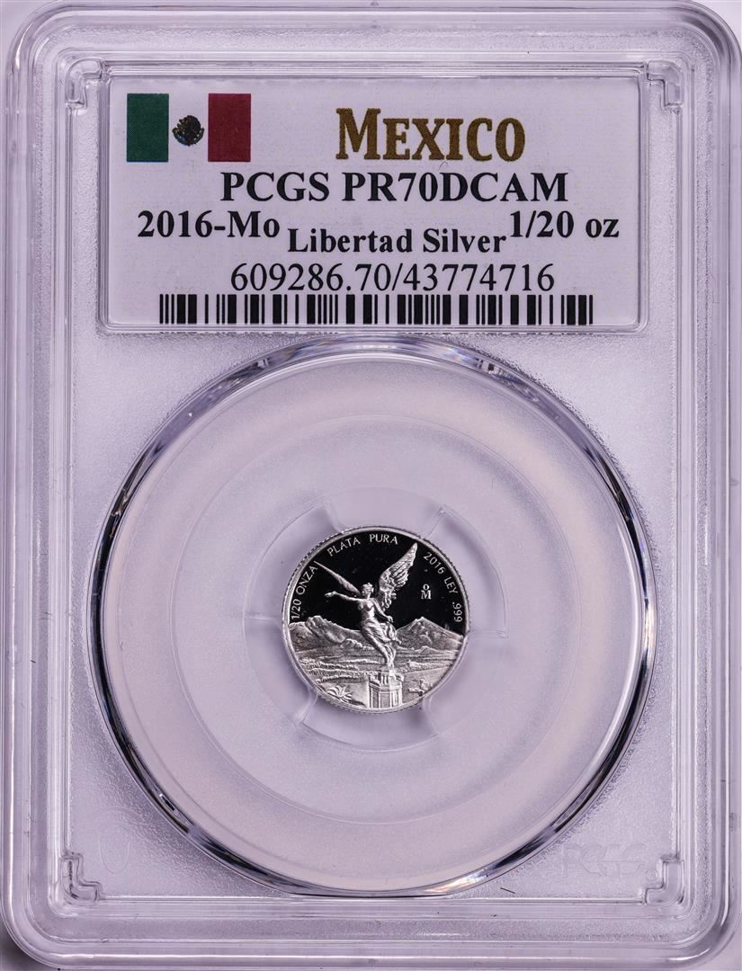One 2016-Mo Mexico Proof 1/20 oz Silver Libertad Coin PCGS PR70DCAM. PCGS Graded.
