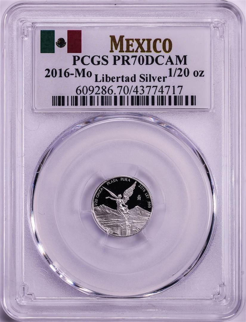 One 2016-Mo Mexico Proof 1/20 oz Silver Libertad Coin PCGS PR70DCAM. PCGS Graded.