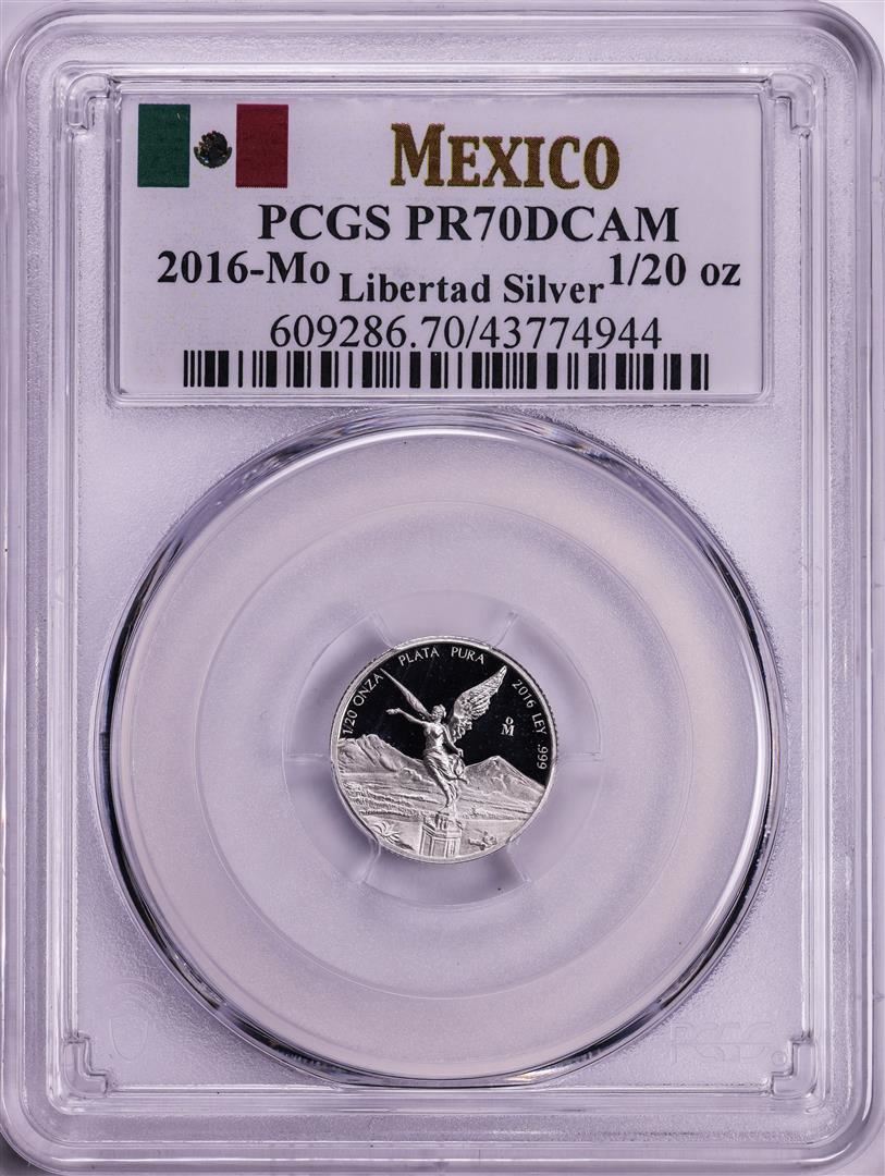 One 2016-Mo Mexico Proof 1/20 oz Silver Libertad Coin PCGS PR70DCAM. PCGS Graded.