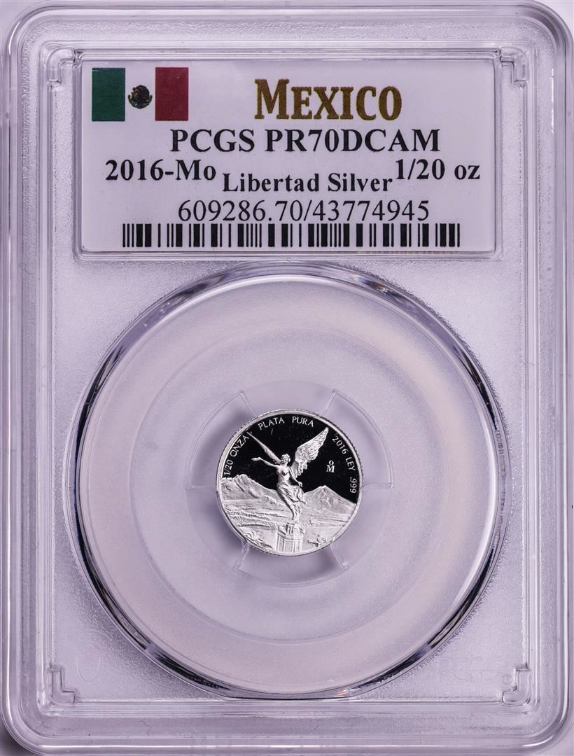 One 2016-Mo Mexico Proof 1/20 oz Silver Libertad Coin PCGS PR70DCAM. PCGS Graded.