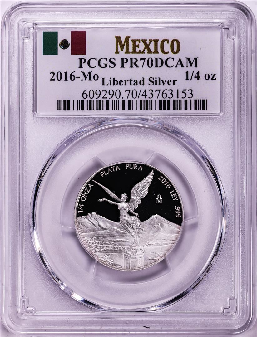 One 2016-Mo Mexico Proof 1/4 oz Silver Libertad Coin PCGS PR70DCAM. PCGS Graded.