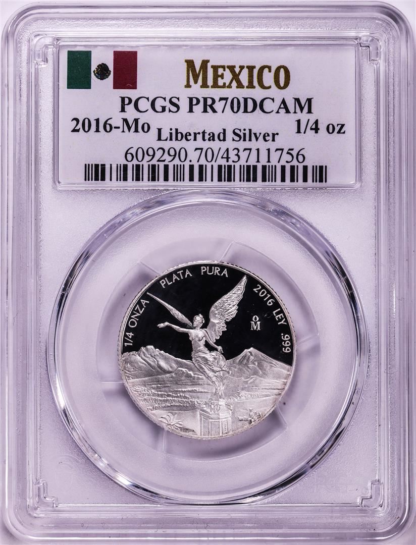 One 2016-Mo Mexico Proof 1/4 oz Silver Libertad Coin PCGS PR70DCAM. PCGS Graded.