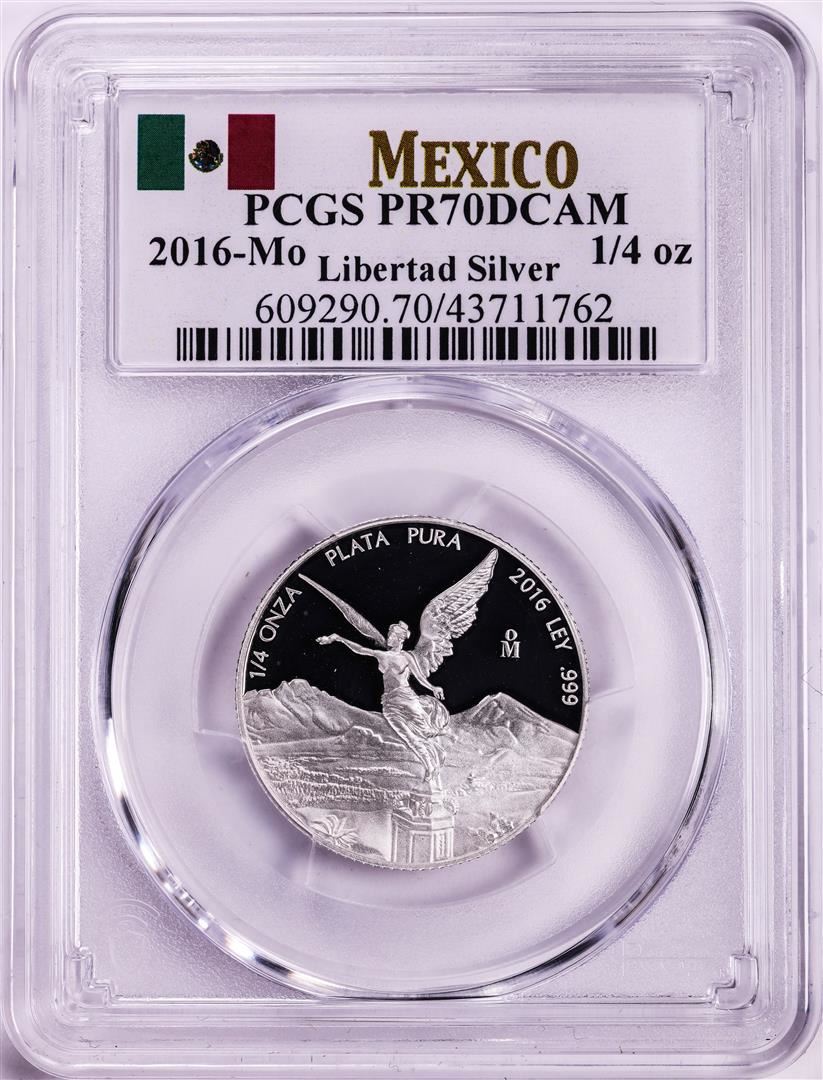 One 2016-Mo Mexico Proof 1/4 oz Silver Libertad Coin PCGS PR70DCAM. PCGS Graded.