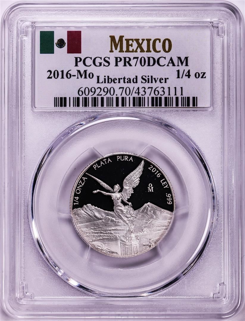 One 2016-Mo Mexico Proof 1/4 oz Silver Libertad Coin PCGS PR70DCAM. PCGS Graded.