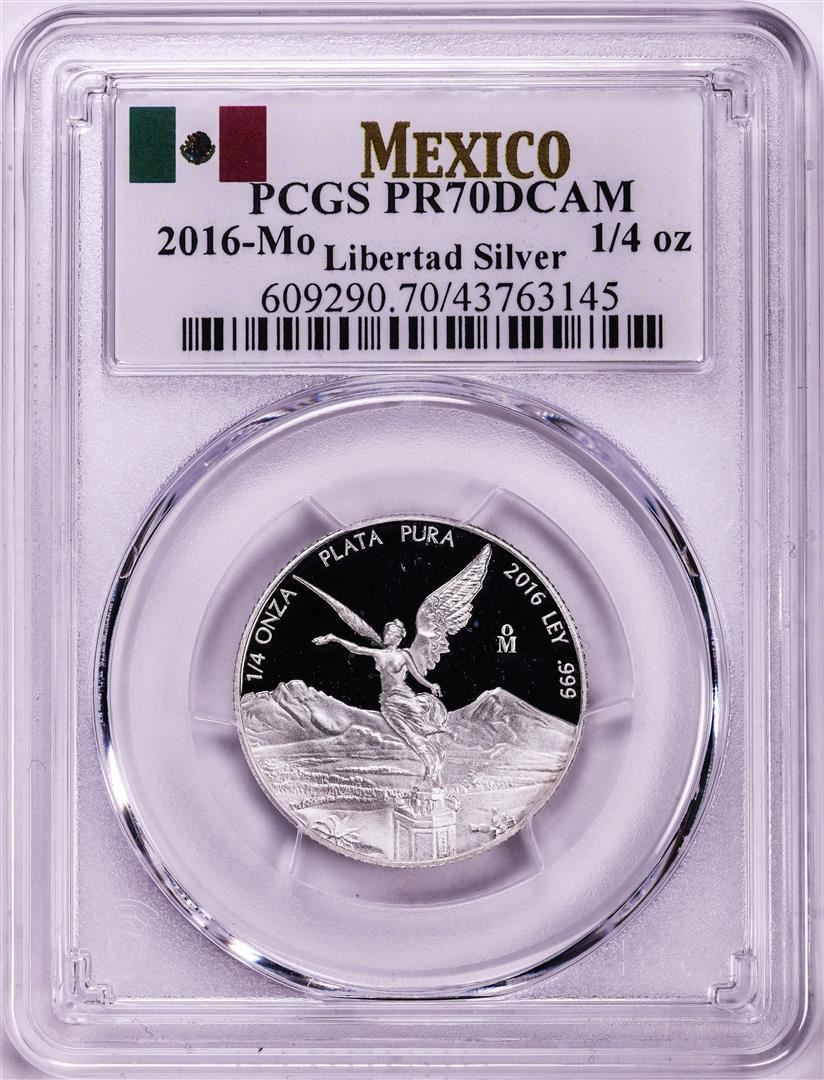 One 2016-Mo Mexico Proof 1/4 oz Silver Libertad Coin PCGS PR70DCAM. PCGS Graded.