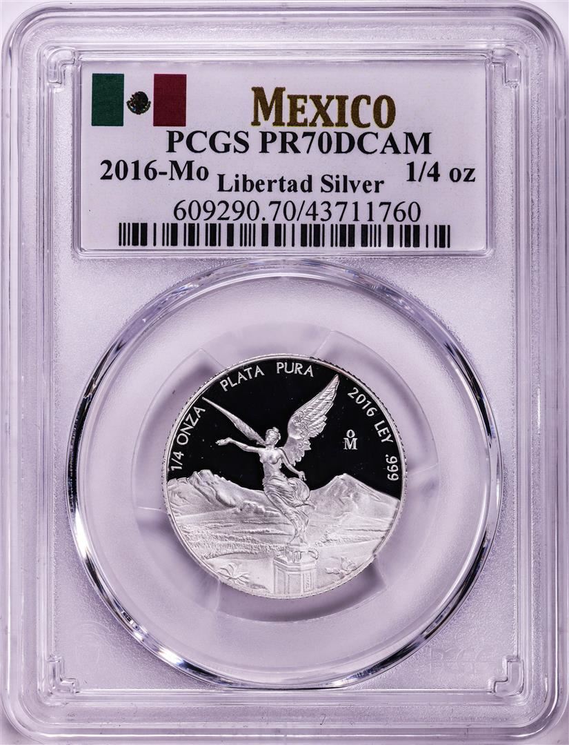 One 2016-Mo Mexico Proof 1/4 oz Silver Libertad Coin PCGS PR70DCAM. PCGS Graded.
