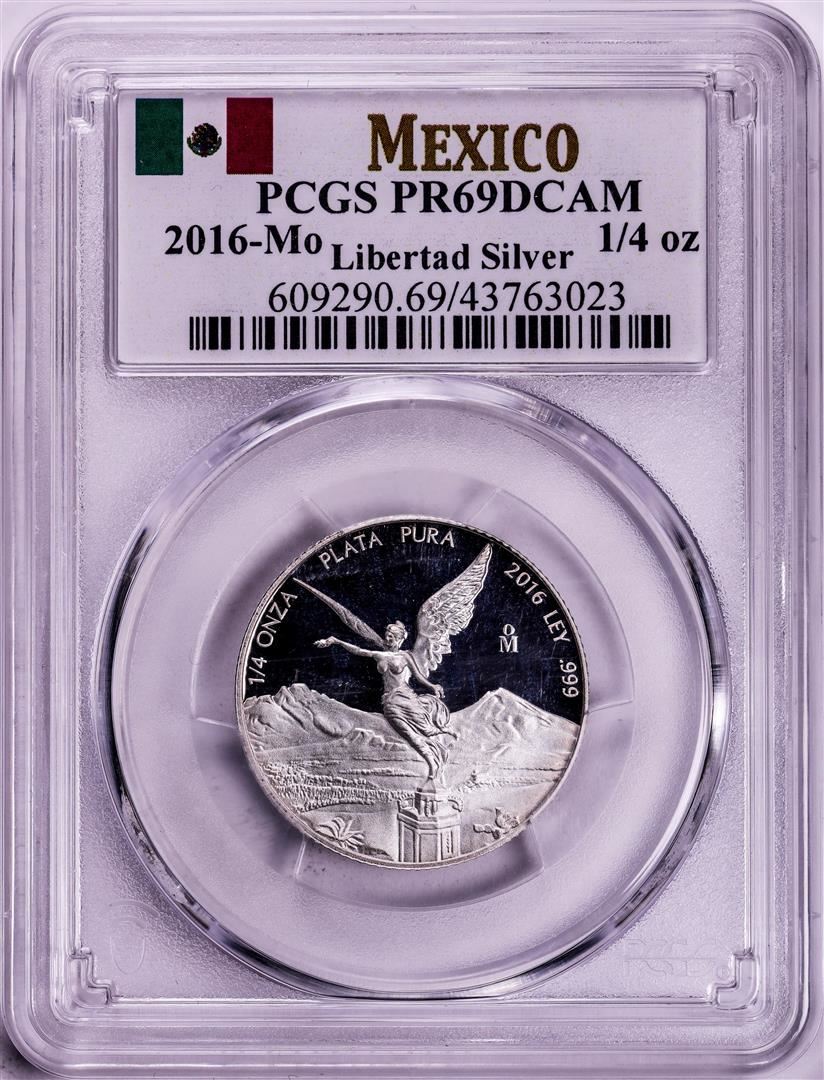 One 2016-Mo Mexico Proof 1/4 oz Silver Libertad Coins PCGS PR69DCAM. PCGS Graded.