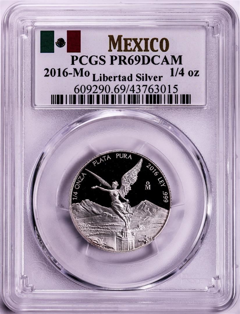 One 2016-Mo Mexico Proof 1/4 oz Silver Libertad Coins PCGS PR69DCAM. PCGS Graded.