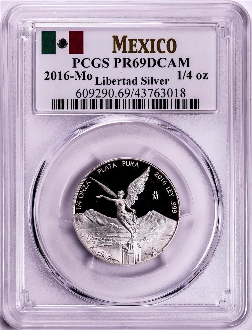 One 2016-Mo Mexico Proof 1/4 oz Silver Libertad Coins PCGS PR69DCAM. PCGS Graded.