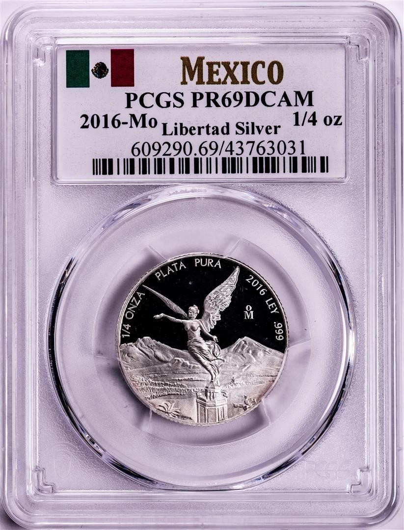 One 2016-Mo Mexico Proof 1/4 oz Silver Libertad Coins PCGS PR69DCAM. PCGS Graded.