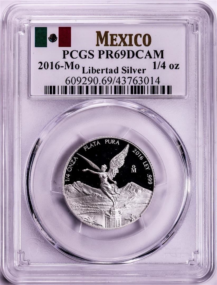 One 2016-Mo Mexico Proof 1/4 oz Silver Libertad Coins PCGS PR69DCAM. PCGS Graded.