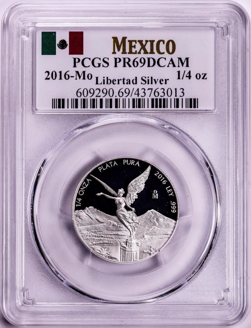 One 2016-Mo Mexico Proof 1/4 oz Silver Libertad Coins PCGS PR69DCAM. PCGS Graded.