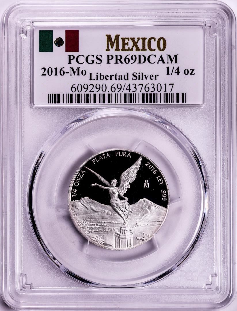 One 2016-Mo Mexico Proof 1/4 oz Silver Libertad Coins PCGS PR69DCAM. PCGS Graded.