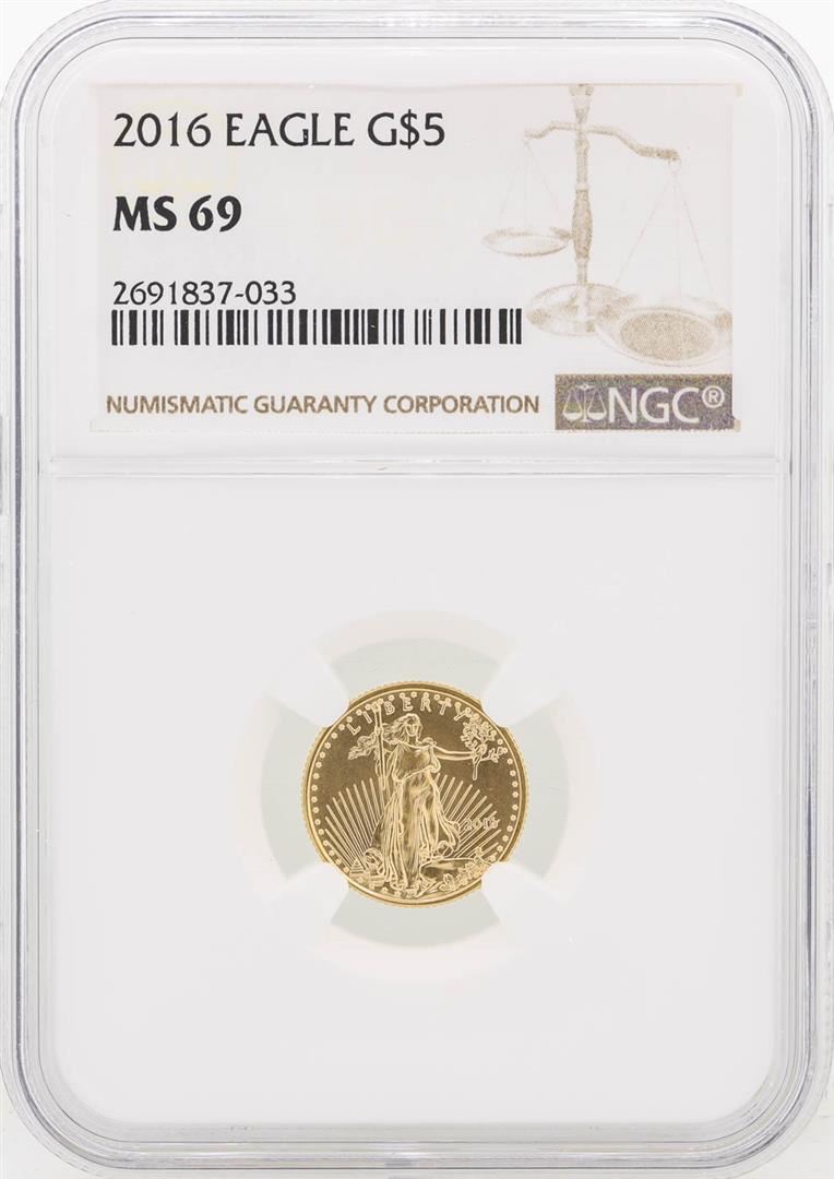One 2016 NGC MS69 $5 Eagle Gold Coin.