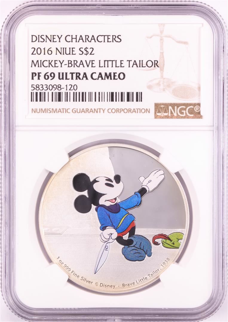 2016 Niue $2 Proof Disney Mickey-Brave Little Tailor Silver Coin NGC PF69 Ultra Cameo