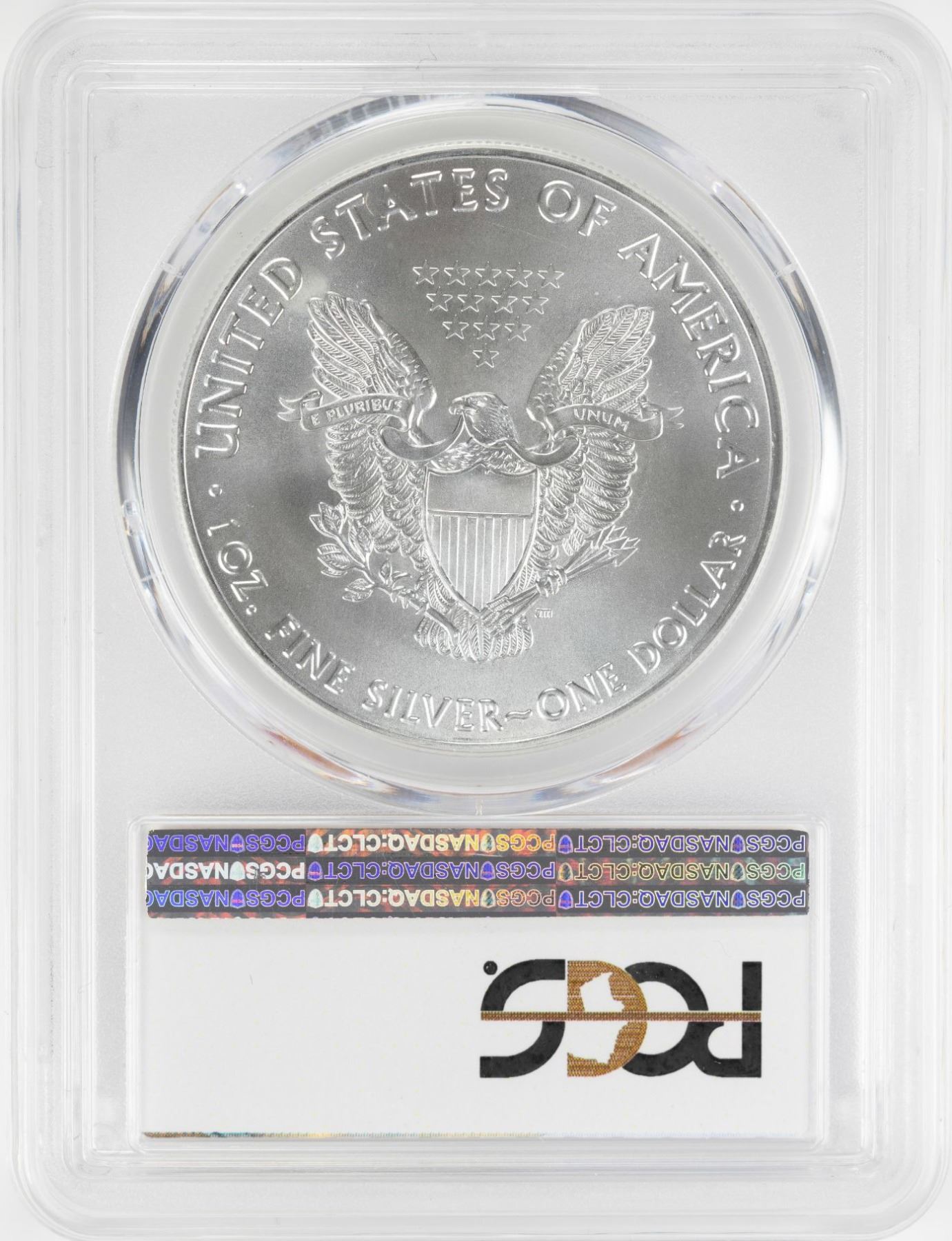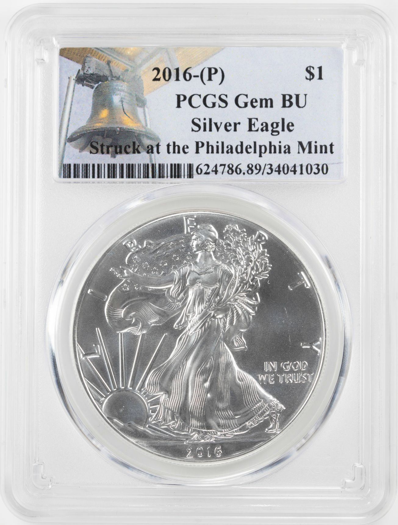 One 2016-P $1 American Silver Eagle Coin PCGS Gem BU Struck at the Philadelphia Mint.