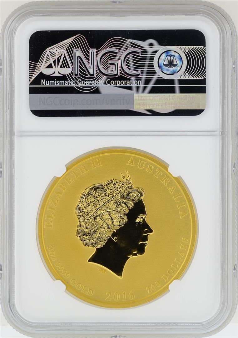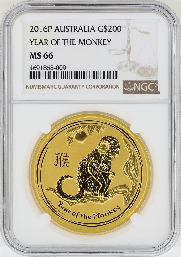 One 2016-P $200 Australia Year of the Monkey Gold Coin NGC MS66. NGC certified. NGC Certified.