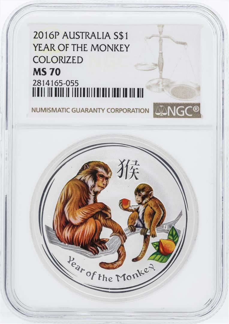 One 2016-P Australia $1 Year of the monkey Silver Coin NGC MS70.