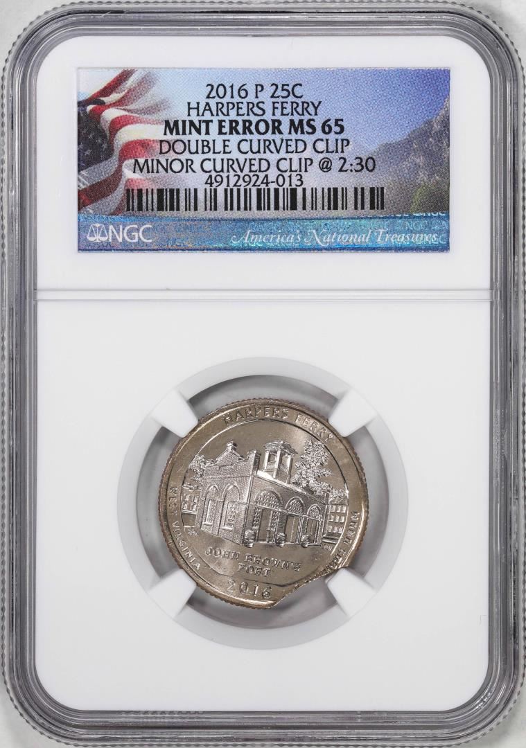 2016-P Harpers Ferry Quarter Coin Mint Error - Double Curved Clip NGC MS65