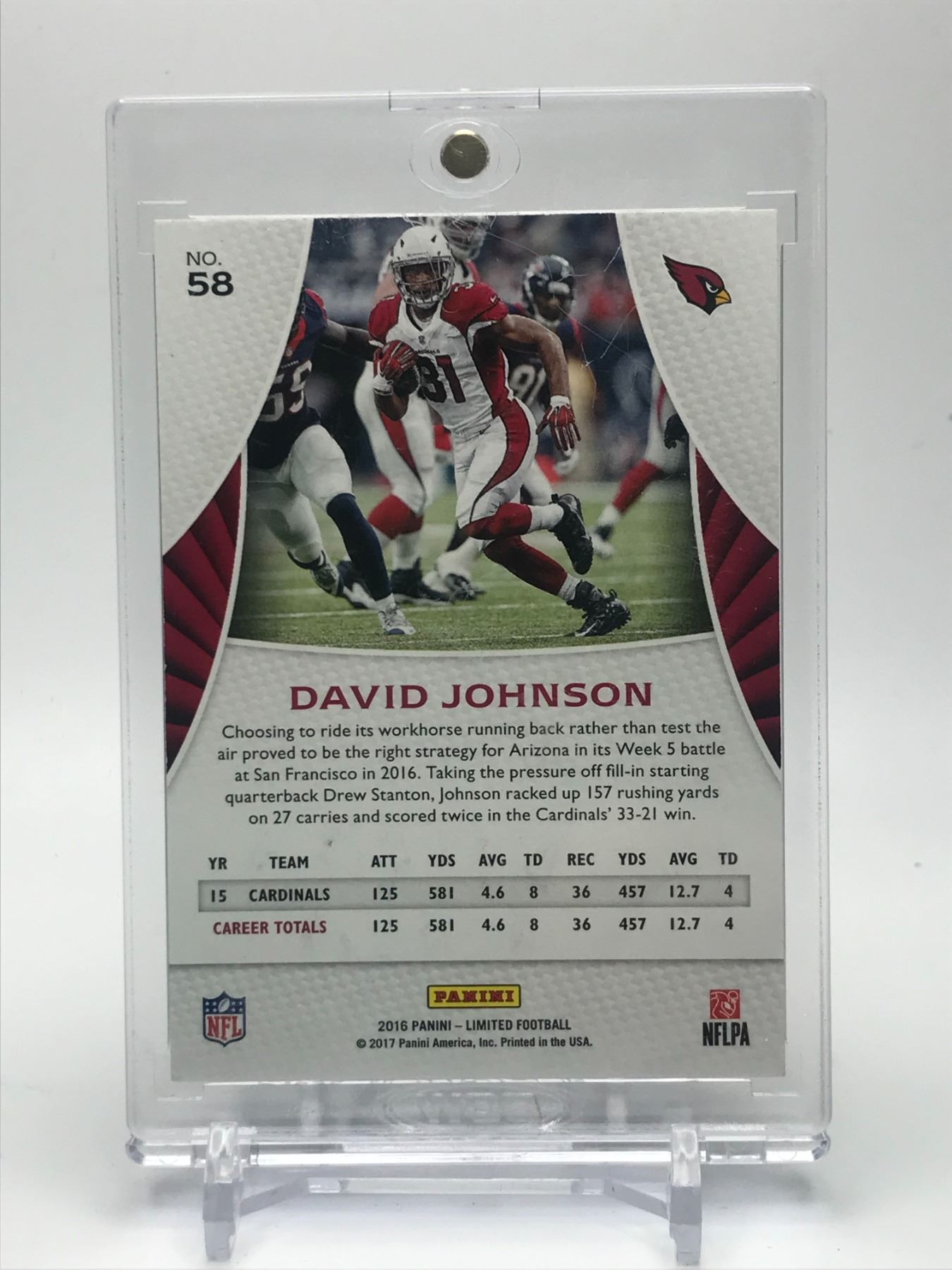 2016 PANINI #58 DAVID JOHNSON 07/49 AUTOGRAPHED