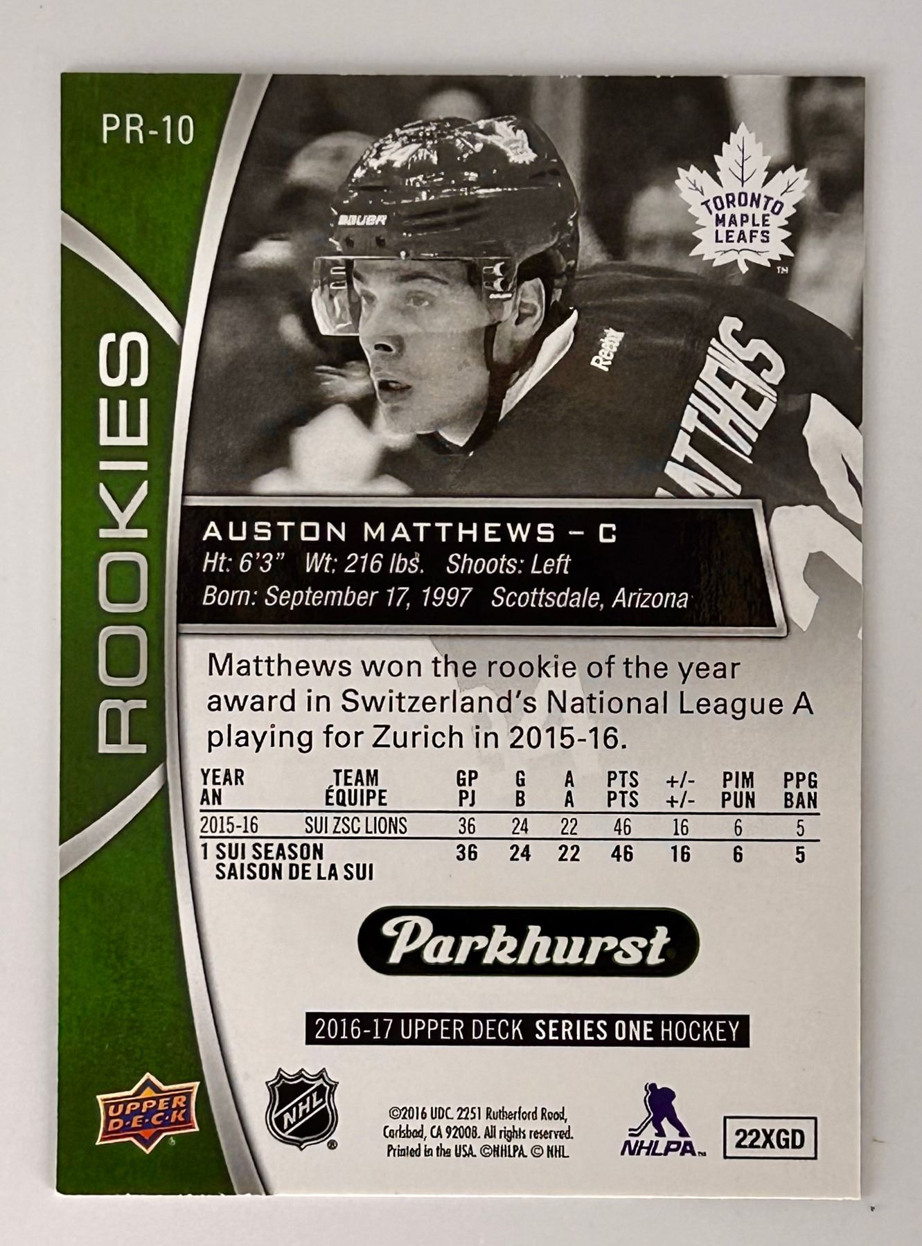 2016 Parkhurst Green Rookie Card