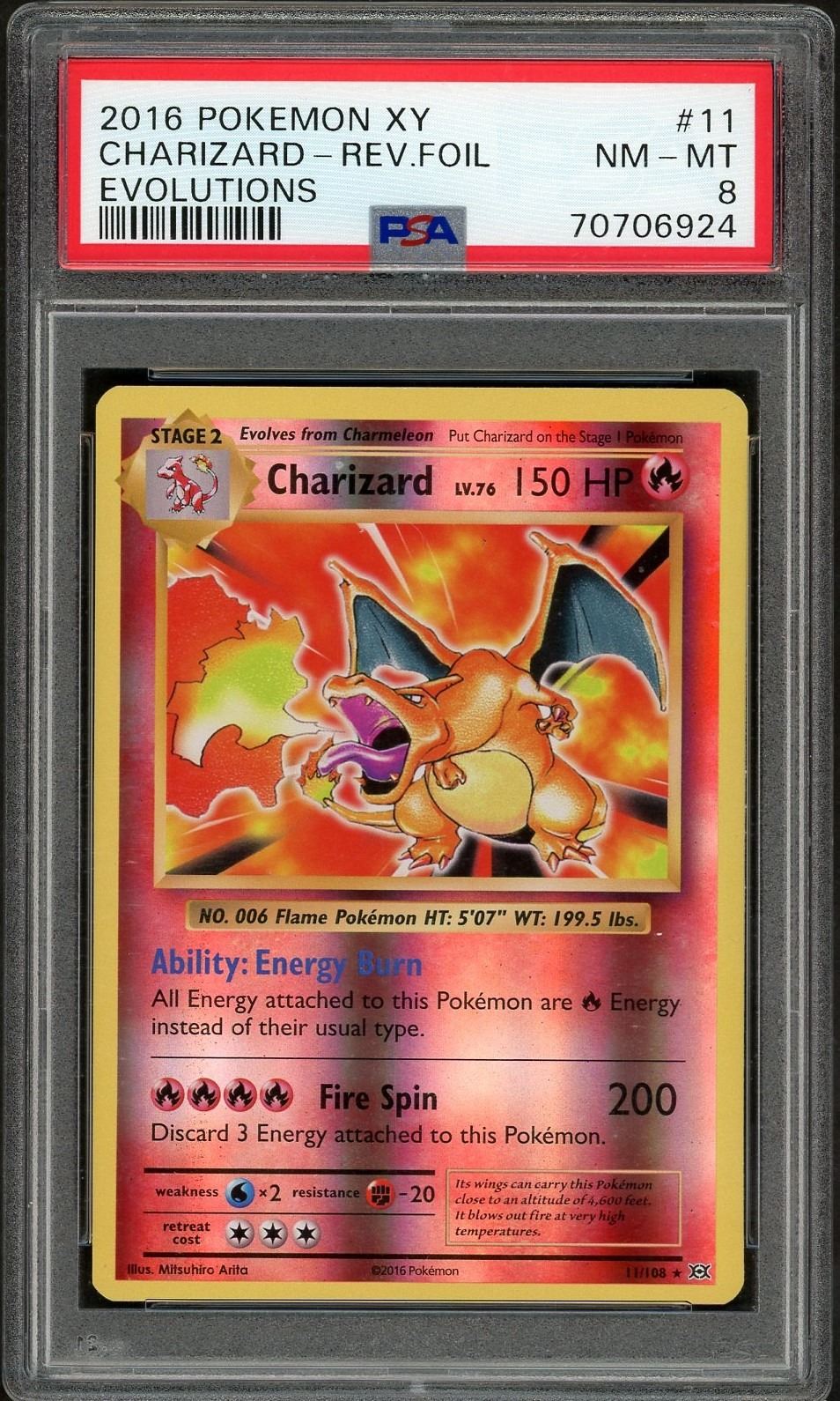 2016 Pokemon Charizard Reverse Holo from the popular XY Evolutions set graded a NM-MT 8 by PSA!
