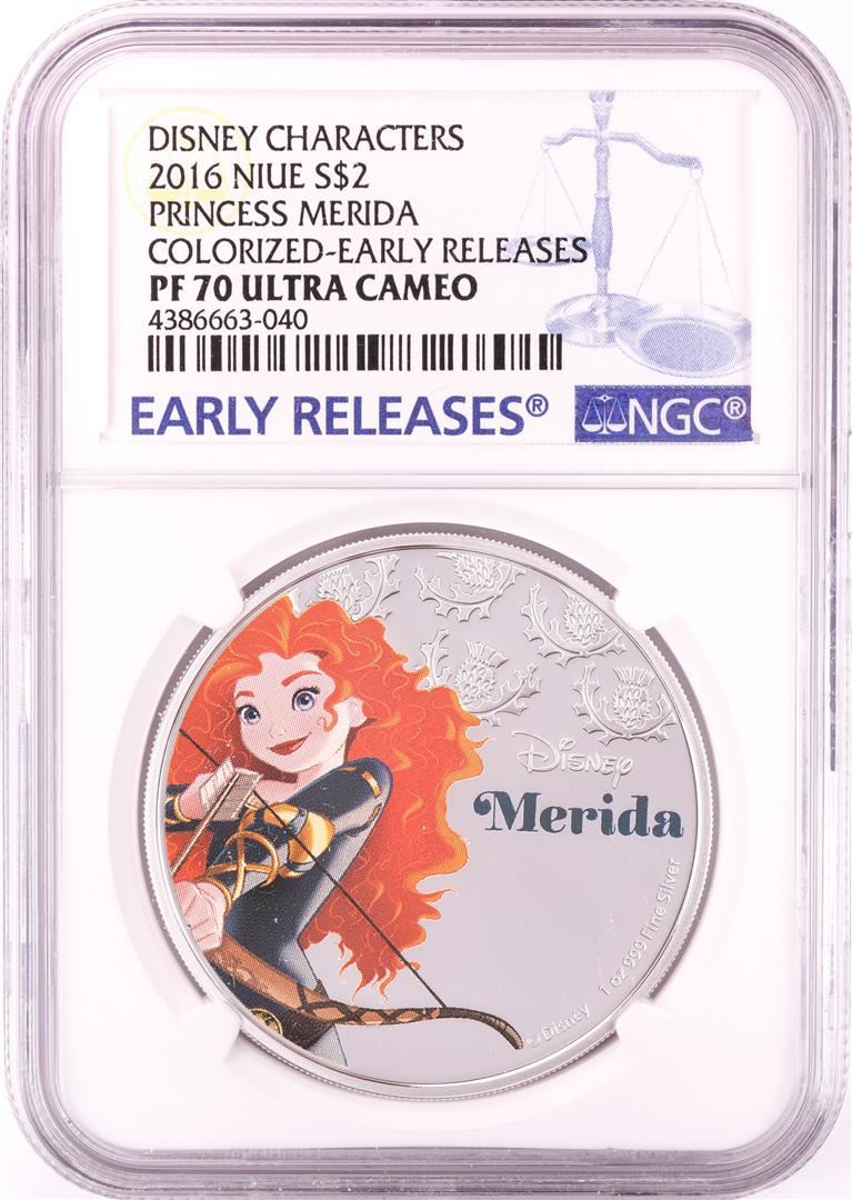One 2016 Proof $2 Disney Princess Merida 1oz Silver Coin NGC PF70 Ultra Cameo. NGC Certified.