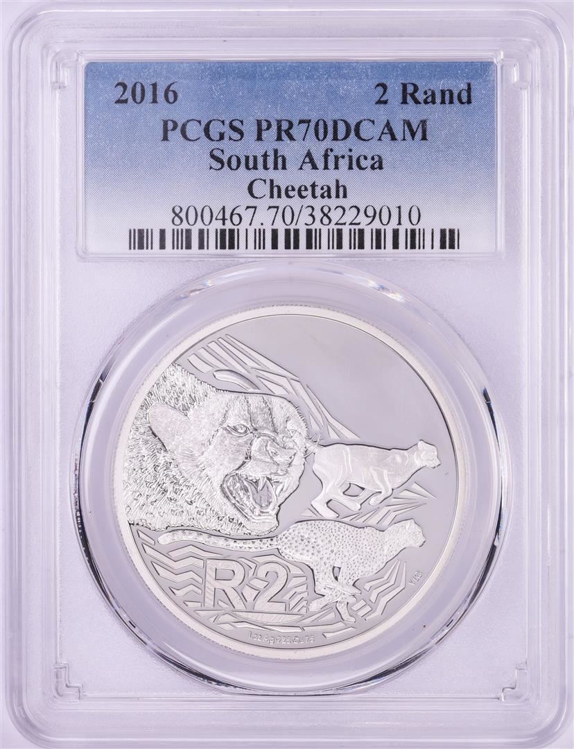 One 2016 Proof South Africa 2 Rand Cheetah Silver Coin PCGS PR70DCAM. PCGS Graded.
