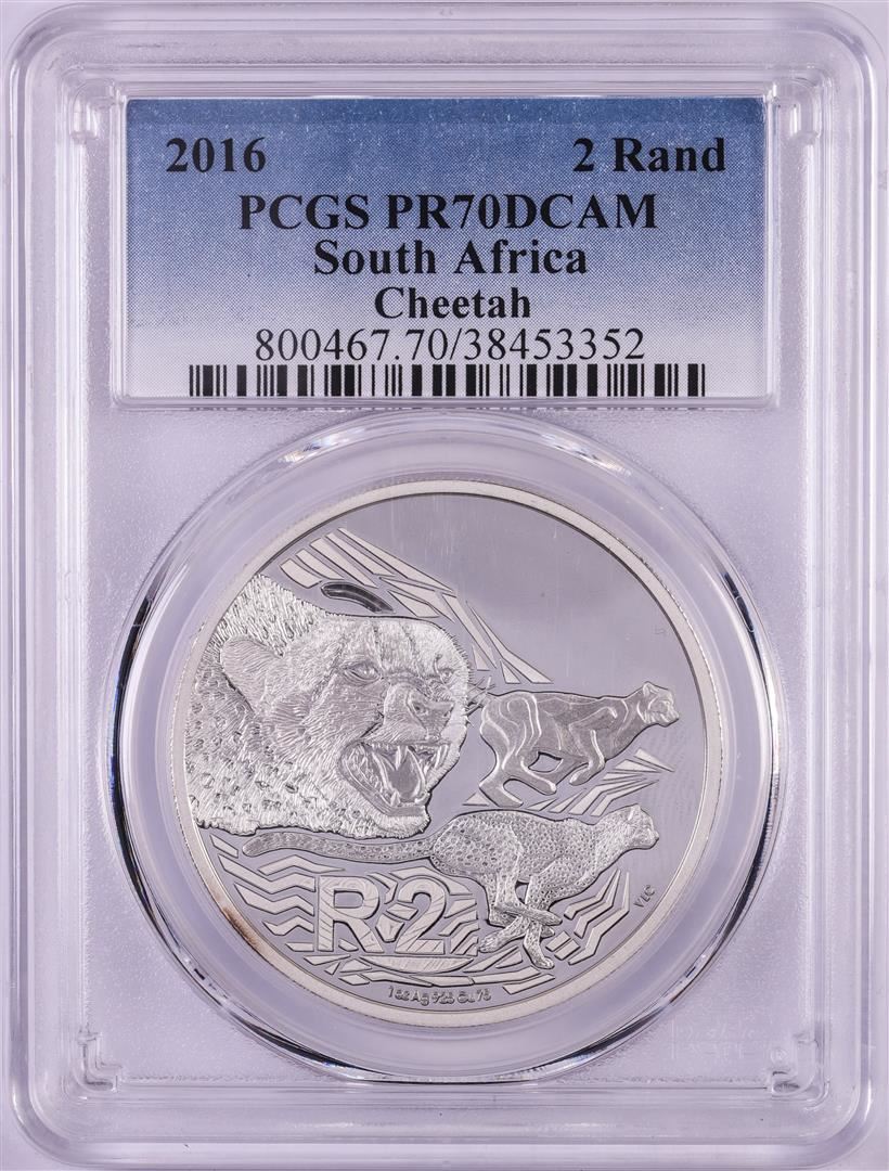 One 2016 Proof South Africa 2 Rand Cheetah Silver Coin PCGS PR70DCAM. PCGS Graded.