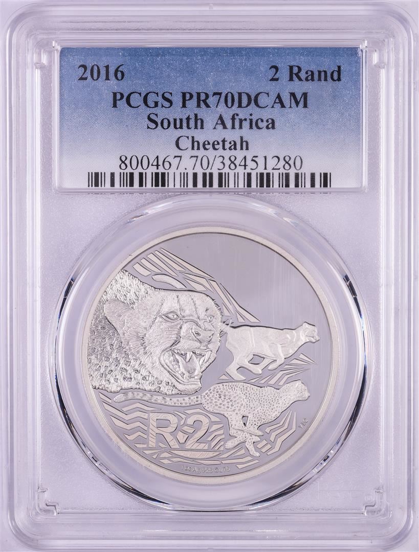 2016 Proof South Africa 2 Rand Cheetah Silver Coin PCGS PR70DCAM