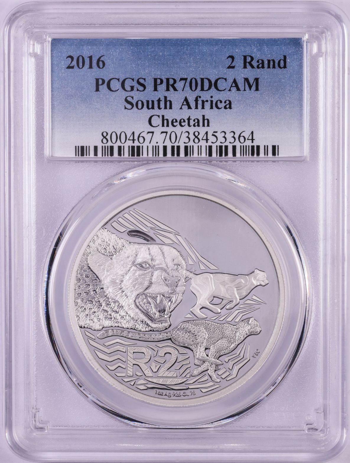 2016 Proof South Africa 2 Rand Cheetah Silver Coin PCGS PR70DCAM