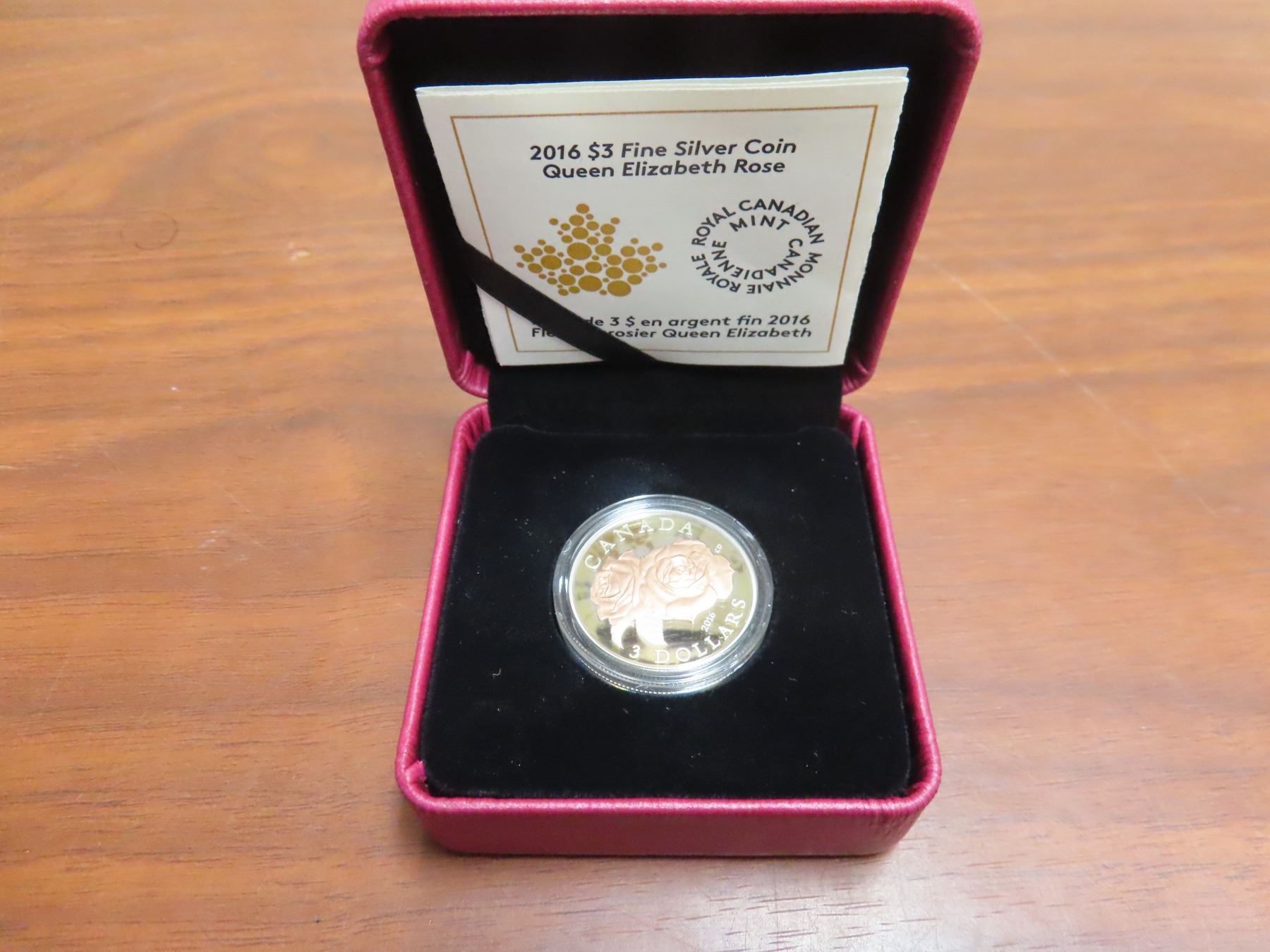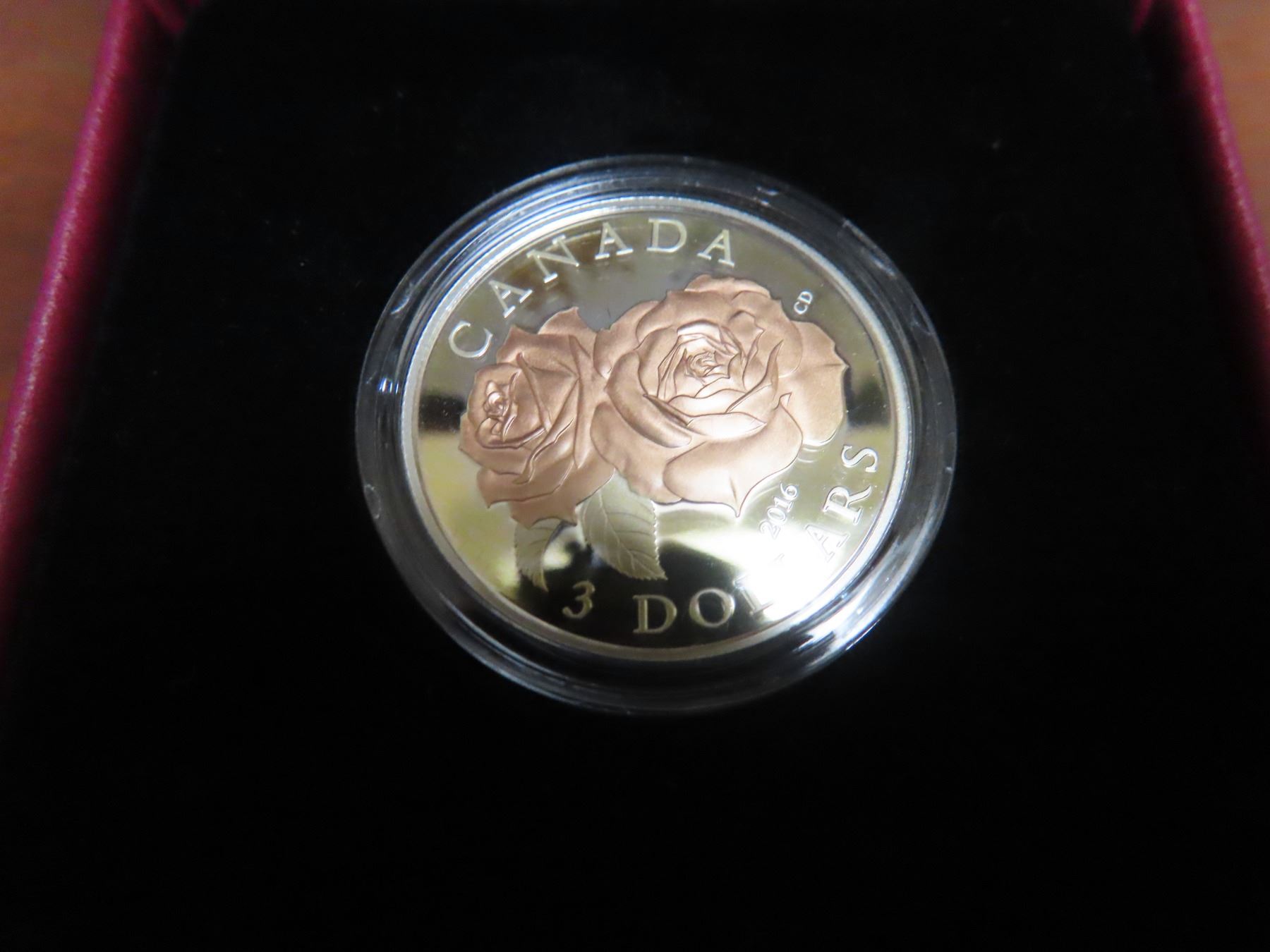 2016 Queen Elizabeth Rose $3. 99.99% pure Silver with Pink Gold Plating. Proof with Ultra Heavy Cameo. Housed in its original Royal Canadian Mint case of issue. Includes Certificate of Authenticity.