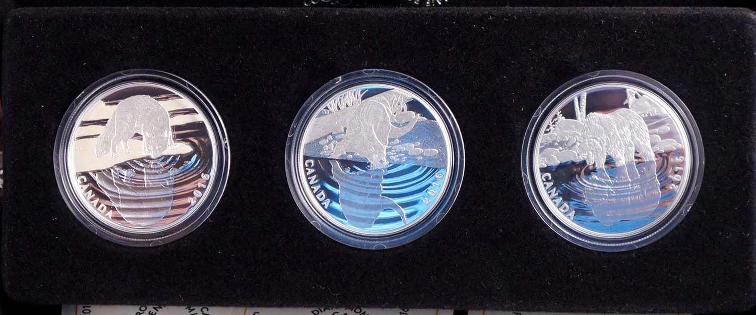 2016 Reflections of Wildlife A set of 3 Coins .9999 .1.53 oz. in Wooden Box