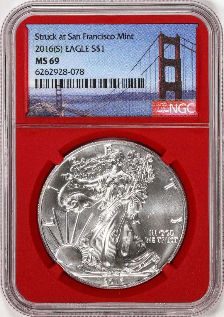 2016-(S) $1 American Silver Eagle Coin NGC MS69 Struck at San Francisco Red Core