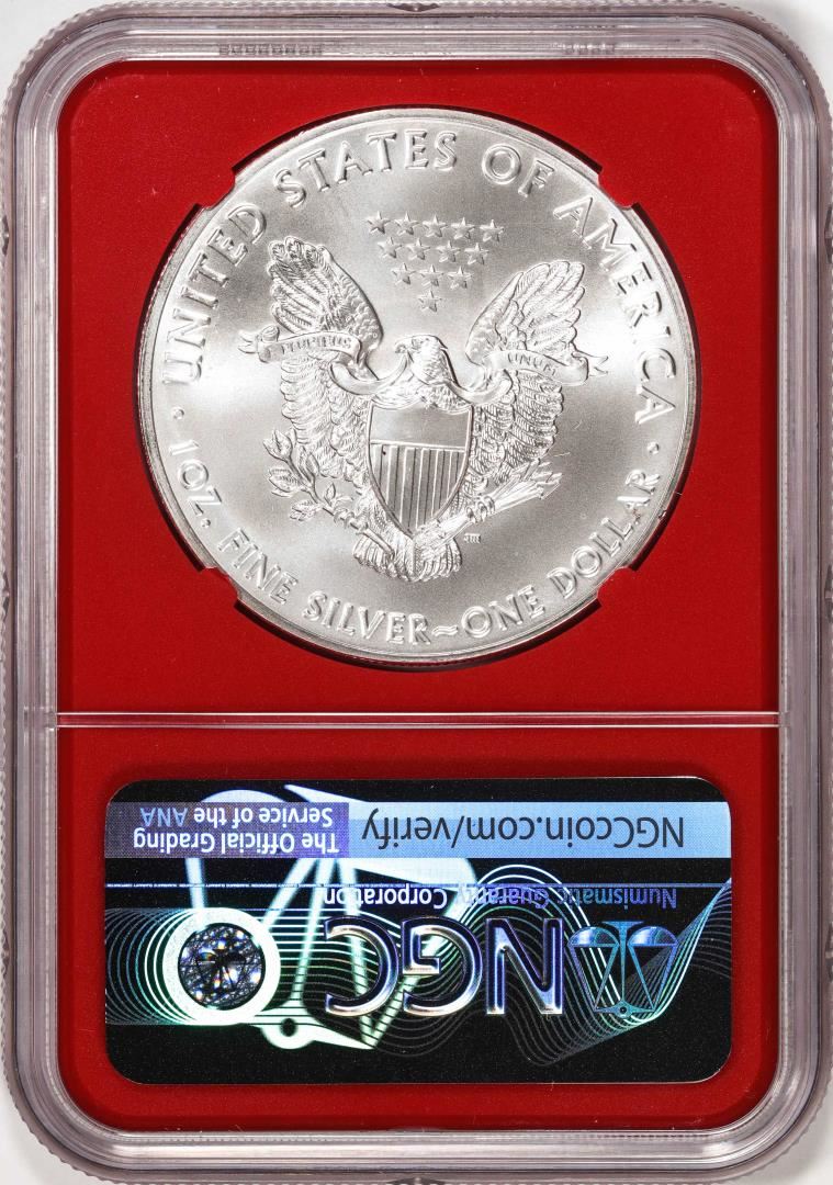 One 2016-(S) $1 American Silver Eagle Coin NGC MS69 Struck at San Francisco Red Core. NGC Certified.