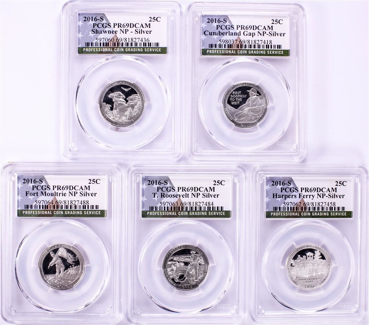 One 2016-S Silver Proof National Parks Quarter (5) Coin Set PCGS PR69DCAM.