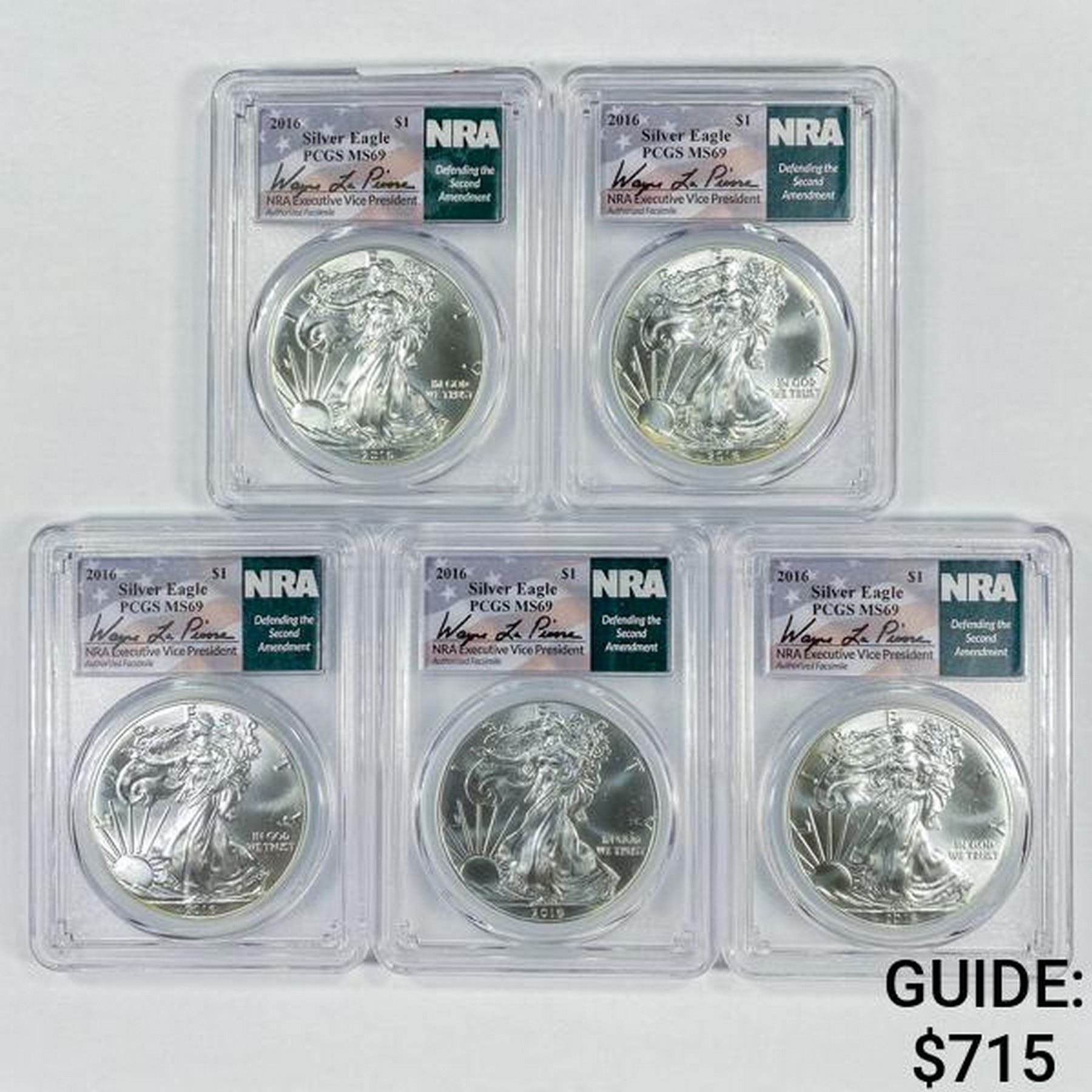 2016 Set (5) A.S.E. NRA Exec. VP Signed PCGS MS69