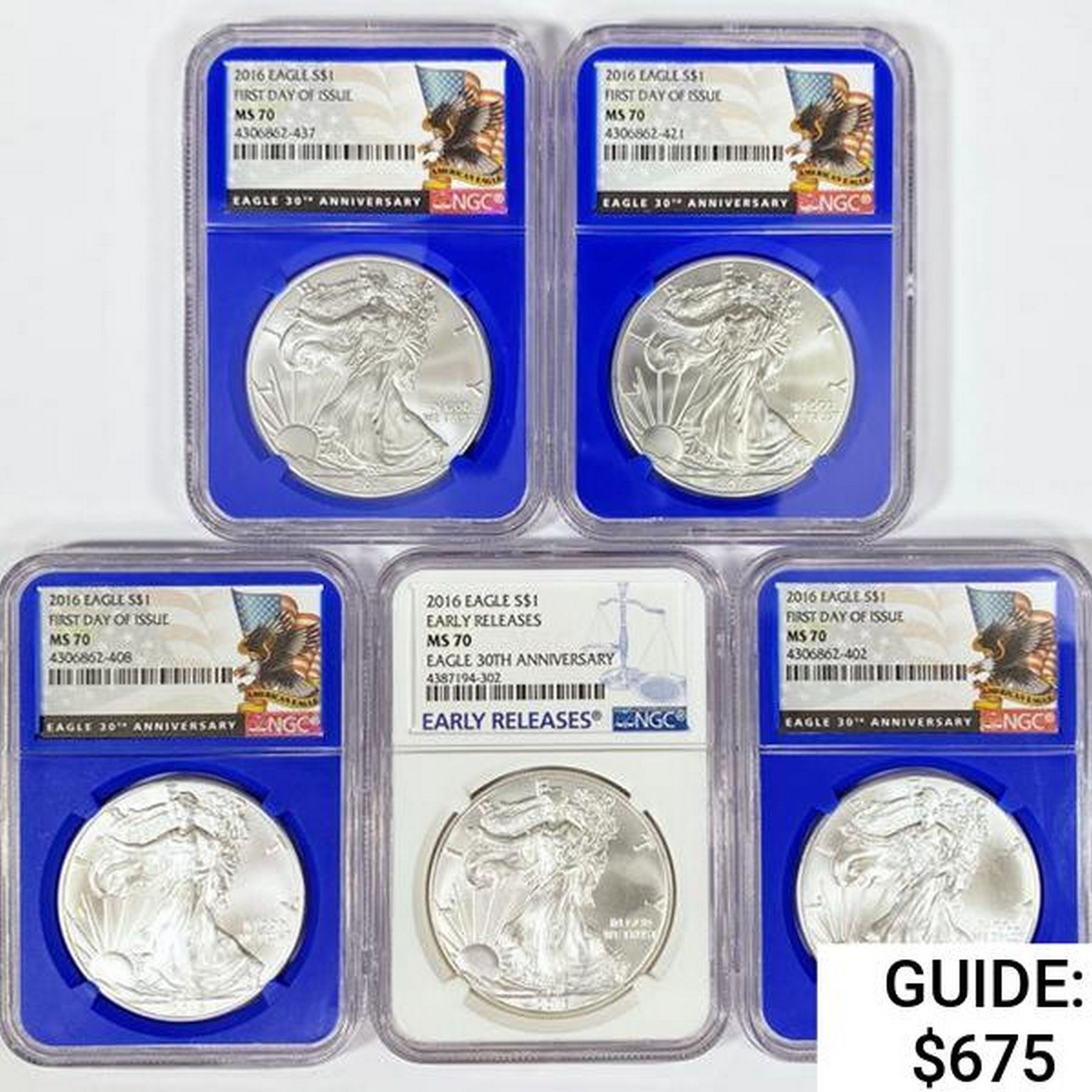 2016 Set [5] ASE NGC MS70 1st Day, 30th Ann