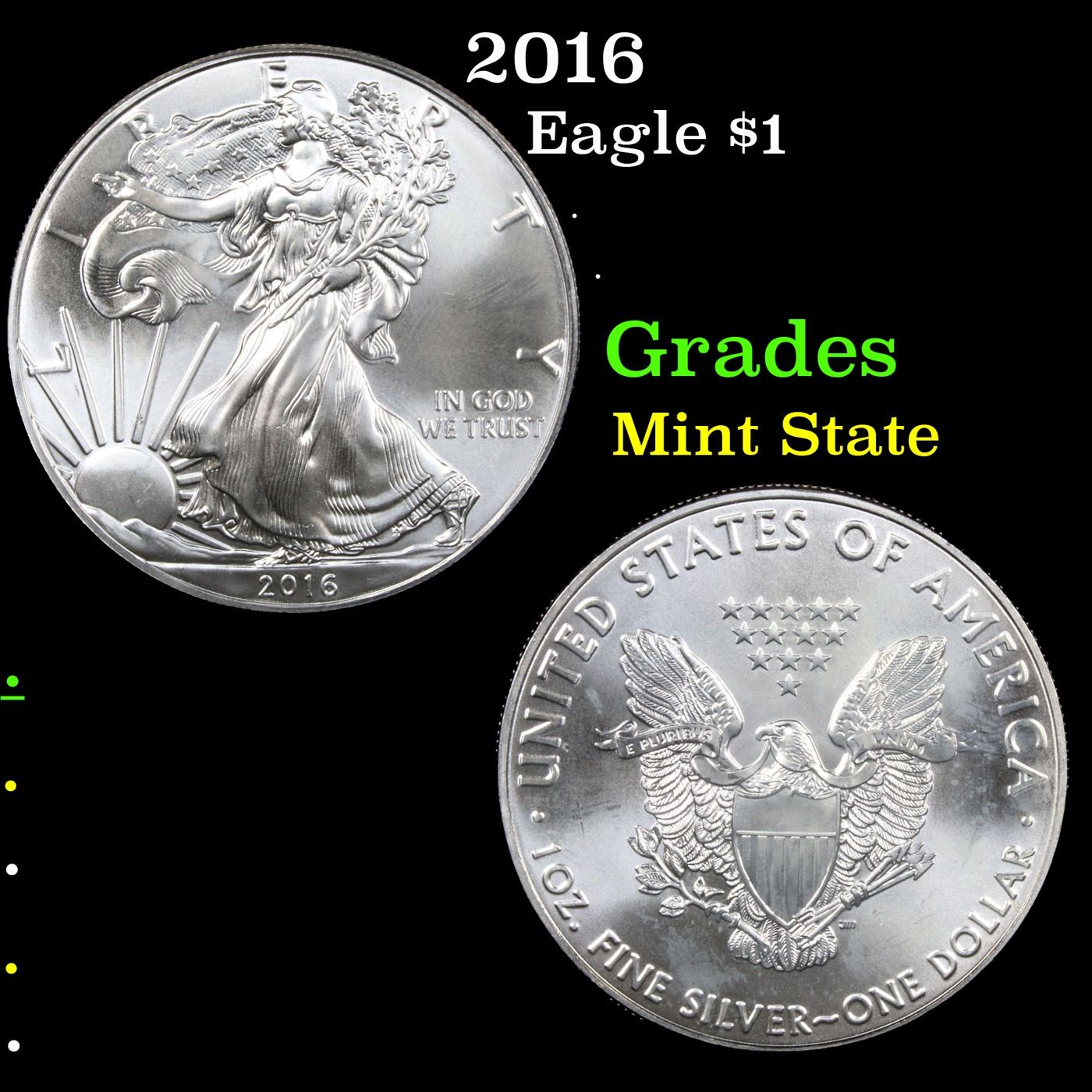 2016 Silver Eagle Dollar $1 Grades Mint State.